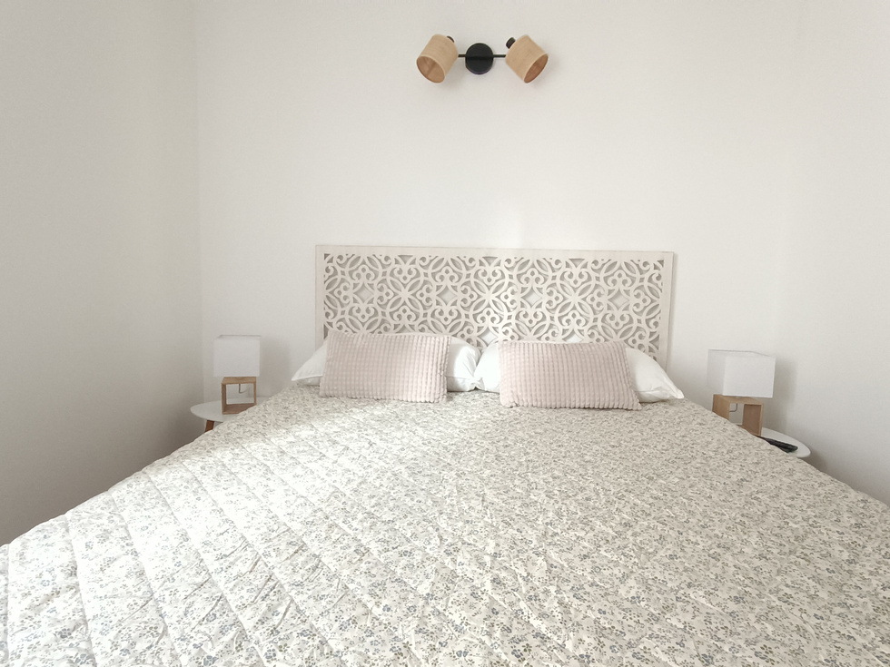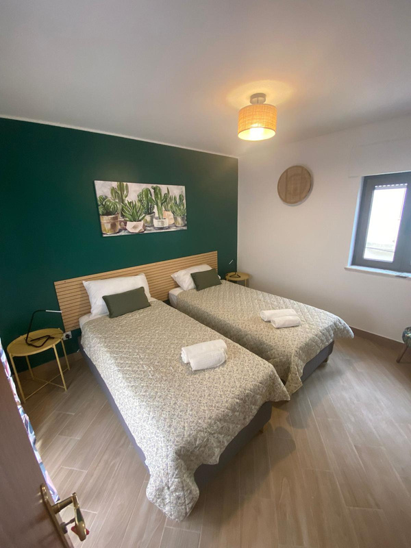 Apartment with one bedroom with 2 single beds, living room with sofa bed (140x190), bathroom, kitchen, backyard with barbecue.